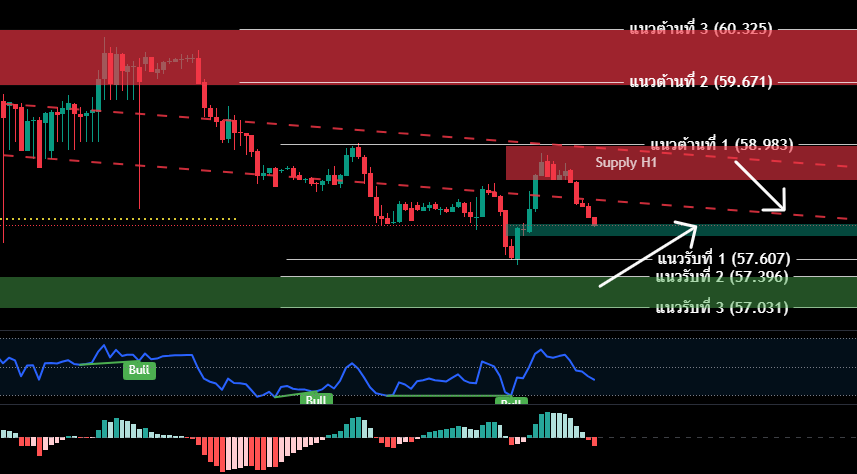 - /เปิดสถานขาย (รอสัญญาณขาย) กรอบ 58.538-58.959 / S: 59.300 เพื่อทำกำไร 58.500/58.300/58.000/57.800